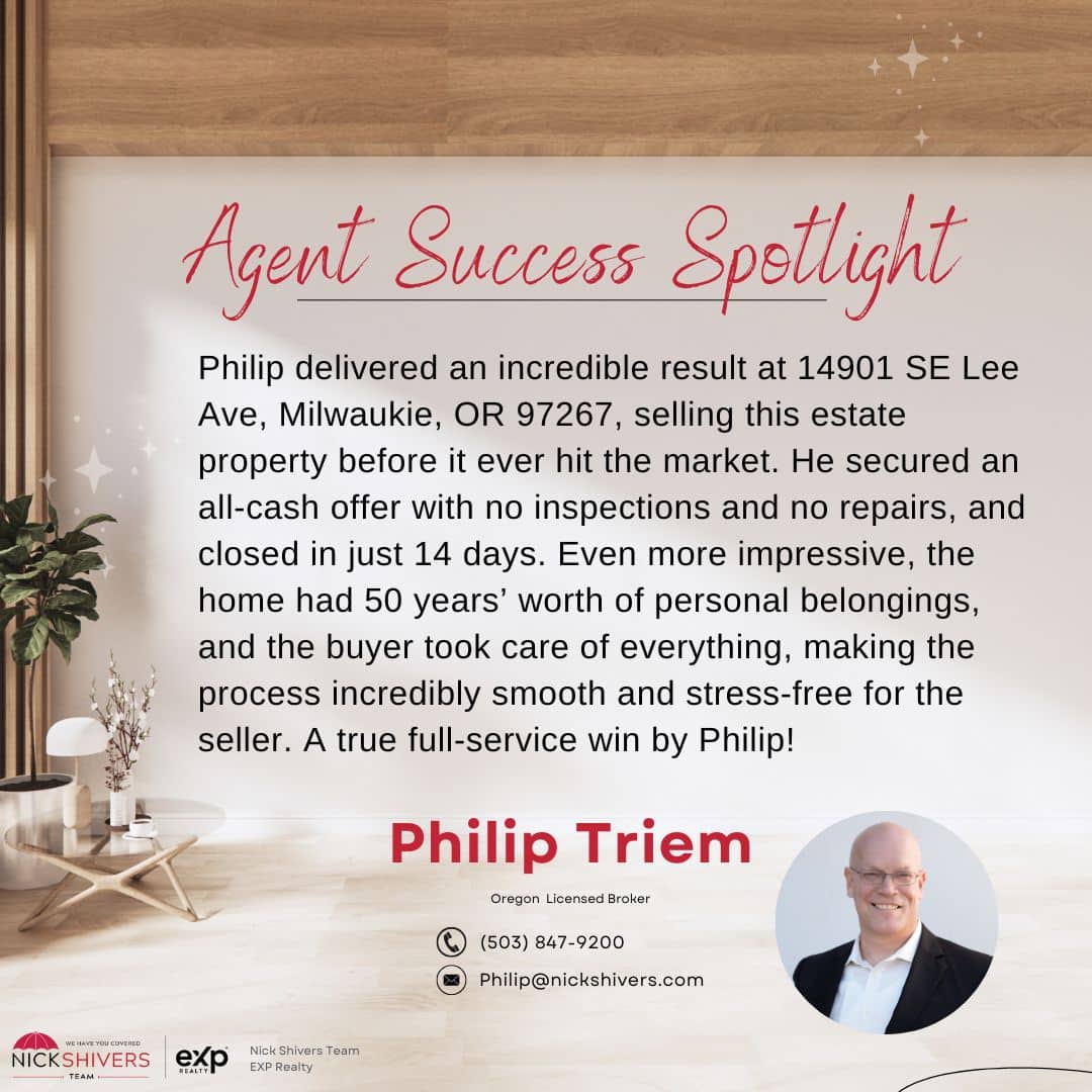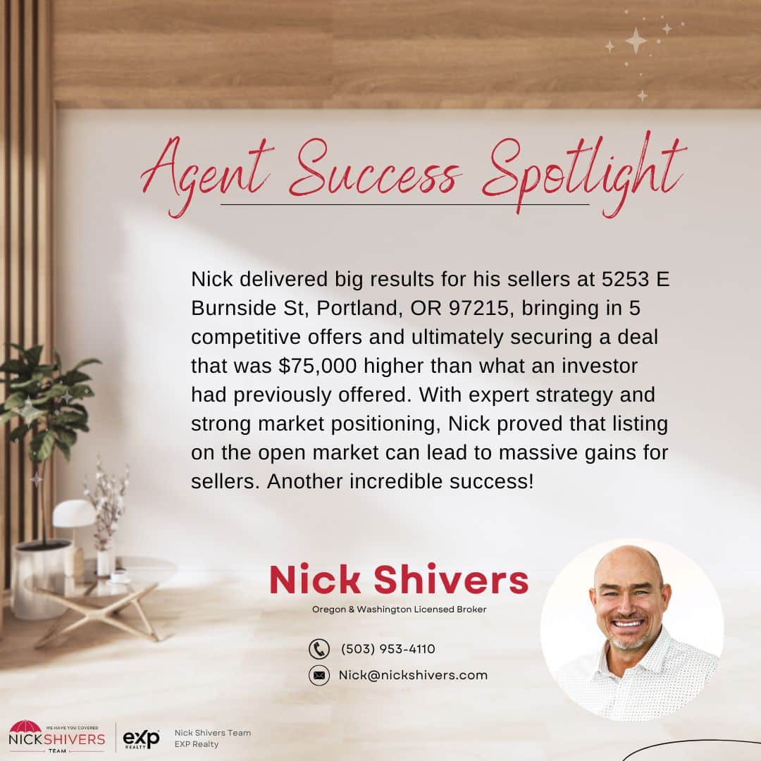 Absolutely! Nick Shivers and his team have served thousands of homeowners in Oregon and SW Washington. They are recognized Nationwide as one of the top Realestate teams in the country by RIS media, named the only Elite agent in Oregon and SW Washington by Homelight and voted #1 agent in Oregon and SW WA by the Portland Realestate Journal for the 10th year in a row.